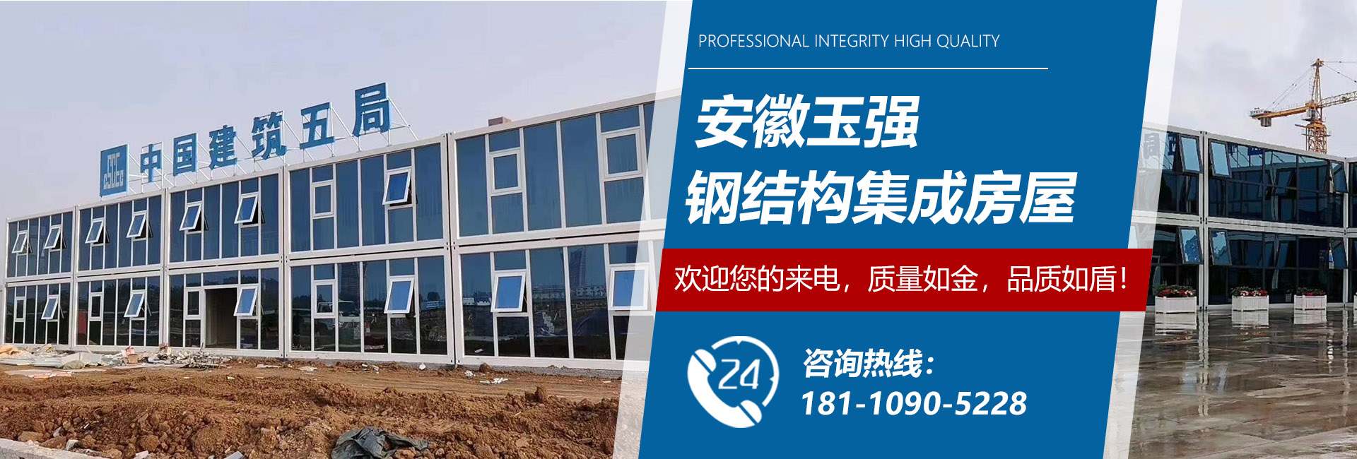 安徽玉強鋼結構集成房屋有限公司是一家集研發、設計、生產、銷售服務于一體的活動房與集裝箱制造企業,公司隊伍具有多年鋼結構制作及產品檢測經驗,嚴格按照鋼結構標準要求制作、檢測。致力于提供研、產、銷、于一體,有著多年積累的先進生產技術和豐富工作經驗,采用精良的工藝技術,生產美觀大方的定型產品,長期以來,受廣大用戶的信賴和支持。歡迎您的來電咨詢。
